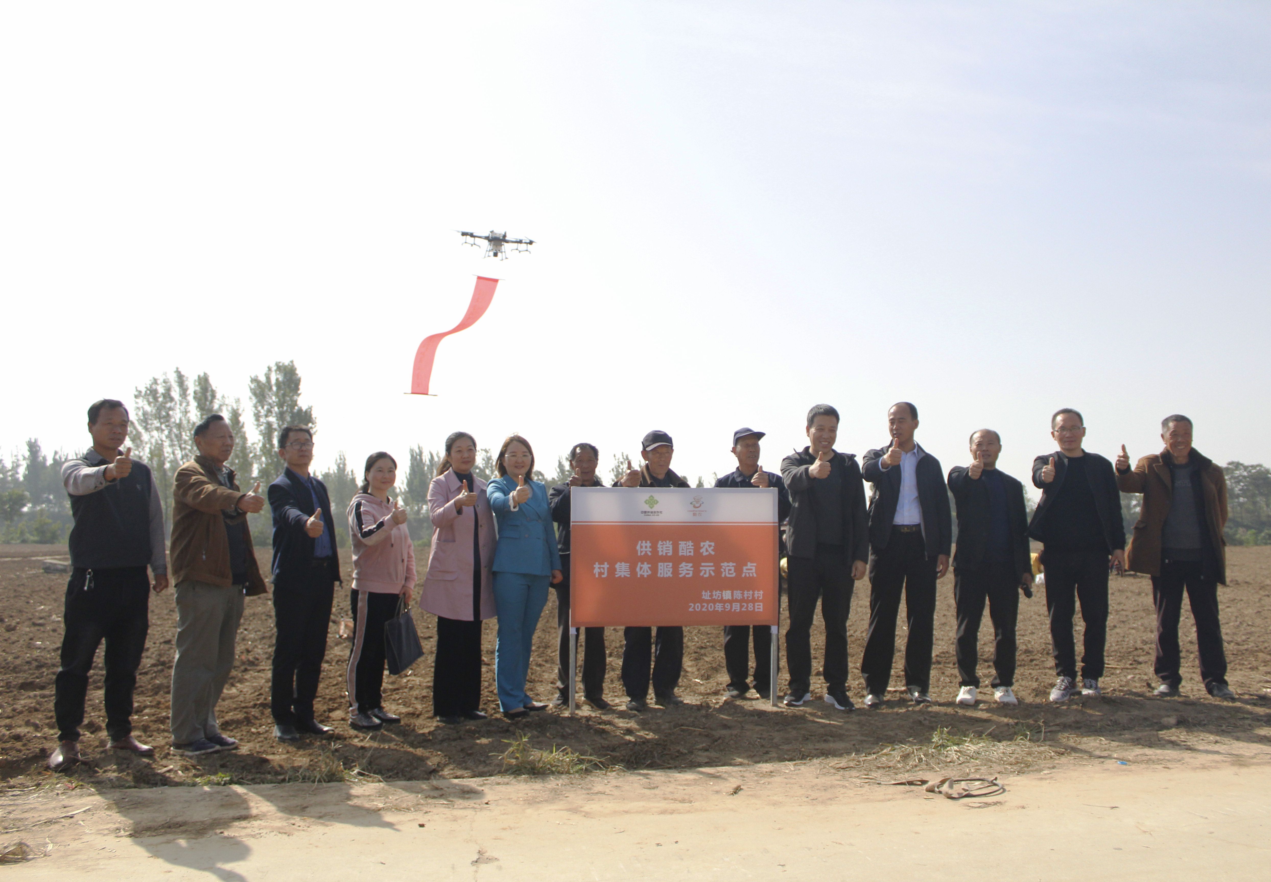 “合作的項(xiàng)目產(chǎn)業(yè)涵蓋了農(nóng)業(yè)生產(chǎn)資料、農(nóng)藥、生活用品的線上線下供應(yīng),土地大田托管,無人機(jī)械耕作、播種、農(nóng)藥噴施、收割等?!眴?dòng)儀式上,周口供銷集團(tuán)為農(nóng)事業(yè)部部長(zhǎng)牛衛(wèi)東介紹說,陳村村集體股份經(jīng)濟(jì)合作社是周口市供銷集團(tuán)與河南酷農(nóng)科技有限公司(以下簡(jiǎn)稱酷農(nóng)無人機(jī)公司)共同打造的無人機(jī)進(jìn)鄉(xiāng)村項(xiàng)目,旨在依靠該公司的科技支撐,發(fā)展智慧農(nóng)業(yè)、綠色農(nóng)業(yè),發(fā)揮供銷體系優(yōu)勢(shì),通過整合無人機(jī)智能技術(shù)研發(fā)力量,形成無人機(jī)智能系統(tǒng)的管控?cái)?shù)據(jù)平臺(tái),將硬件軟件數(shù)據(jù)管理方面形成獨(dú)有的供應(yīng)商生產(chǎn)力。