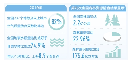 5年砥礪前行,污染防治攻堅戰(zhàn)全面推進(jìn)。截至2019年底,“十三五”規(guī)劃綱要確定的生態(tài)環(huán)境領(lǐng)域9項約束性指標(biāo),有8項已提前完成。天藍(lán)水凈地綠的美麗中國正向我們走來。