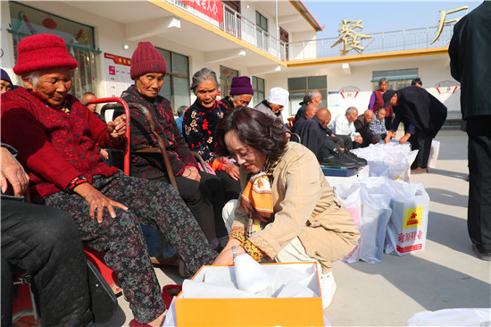 10月23日,在一年一度的重陽節(jié)即將到來之際,市人大代表薛華杰、楊輝等組團來到太康縣城郊鄉(xiāng)王東月居村聯(lián)養(yǎng)點,給這里的特困老人每人送去一雙愛心鞋,讓老人感受到了“有兒有女”的快樂。