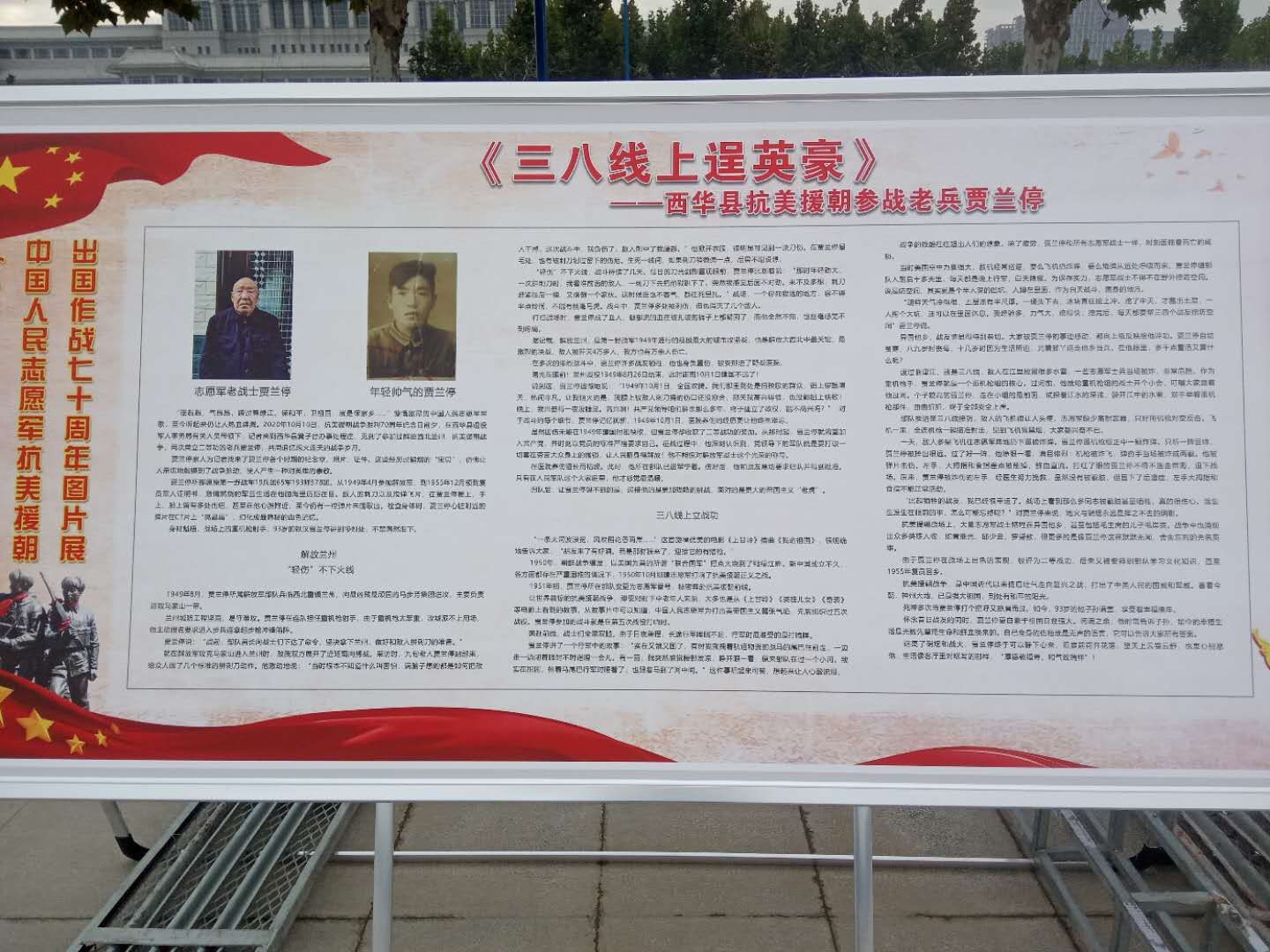 在《三八線上逞英豪,西華縣抗美援朝參戰(zhàn)老兵賈蘭停》英雄事跡展板前,民兵們仔細(xì)地看了一遍又一遍,深受感動(dòng)。“為了國(guó)家和民族,為了和平與正義,這位西華老戰(zhàn)士奔赴異域疆場(chǎng),與強(qiáng)敵殊死較量,事跡可歌可泣,感人至深。我們要以這位本縣老鄉(xiāng)為榜樣,守初心、擔(dān)使命,繼承和發(fā)揚(yáng)老一輩的革命精神、光榮傳統(tǒng)和優(yōu)良作風(fēng),進(jìn)一步弘揚(yáng)偉大的愛(ài)國(guó)主義精神,讓紅色基因代代相傳?!眮?lái)自縣公路局的基干民兵樊麗動(dòng)情地說(shuō)。