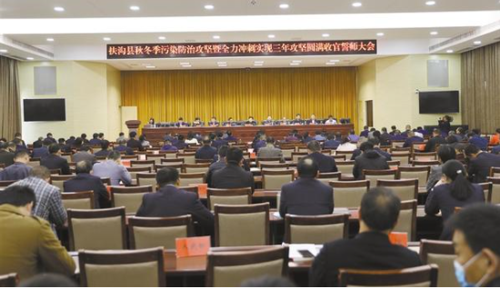 本報(bào)訊 (記者 李一) 10月22日,扶溝召開秋冬季污染防治攻堅(jiān)暨全力沖刺實(shí)現(xiàn)三年攻堅(jiān)圓滿收官誓師大會(如圖),分析形勢,聚焦短板,部署具體工作任務(wù),動員全縣上下扛牢責(zé)任、堅(jiān)定信心,以“亮劍”精神和不破樓蘭終不還的韌勁,堅(jiān)決打贏污染防治攻堅(jiān)戰(zhàn)??h領(lǐng)導(dǎo)張穎波、耿黨恩、姜永來、張建中、李明朗、王霄靈、趙紅亮、曹來凌、任松奎、張禹等出席會議。縣委各部委辦常務(wù)副職、縣直各單位主要負(fù)責(zé)人、各鄉(xiāng)鎮(zhèn)(辦)黨政正職參加會議。