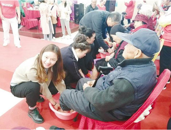重陽節(jié)當天,周口市總工會、周口市教體局、川匯區(qū)供銷社在鴻運酒店舉辦“九九重陽節(jié) 濃濃敬老情”孝老愛親活動,邀請200多名社區(qū)老年人及家屬參加?;顒蝇F(xiàn)場,家屬為老人進行了洗腳(如圖),主辦方安排了精彩的文藝演出,博得觀眾陣陣掌聲,讓社區(qū)老人過了一個歡樂祥和的重陽節(jié)。