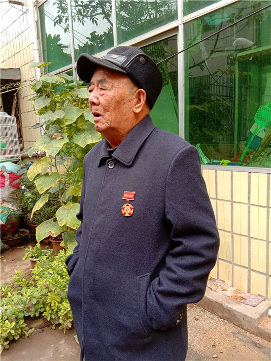 快到王景文家時(shí),記者與他取得了聯(lián)系,沒想到他竟到路口來迎記者,看到他硬朗的身板和健康的身體,聽他說話聲音洪亮、底氣十足,記者還是很欣慰的,畢竟經(jīng)歷了70年的風(fēng)雨洗禮,還能行走自如、聲如洪鐘,的確是寶刀不老。被他迎進(jìn)家,其老伴滿頭銀發(fā),喜瞇瞇地讓記者進(jìn)屋,王老先生去里屋找出了一枚抗美援朝紀(jì)念章,并說抗美援朝和平紀(jì)念章等物品都放丟了,找不到了,有些遺憾。記者就開門見山地說要聽他講講參加抗美援朝的故事,他不好意思地笑了:“講不好,年齡大了,記性不好,有好多事都記不清了……”當(dāng)問起他老家是哪里時(shí),王老先生還是打開了話匣子。1934年,他出生在淮陽縣劉振屯鄉(xiāng)耿樓大隊(duì)李樓村,由于家境貧寒,他從小就跟隨家人一路逃荒要飯來到了扶溝,但日子還是艱難,為了能活命,父母無奈把他送給了扶溝縣城一戶人家,從此他就成了這戶人家的孩子,并于1951年5月結(jié)婚??山Y(jié)婚沒幾個(gè)月,縣里就開始征兵了。當(dāng)兵離家,要丟下妻子,更何況妻子已有孕在身,他真舍不得;保家衛(wèi)國(guó),是義務(wù)是責(zé)任是擔(dān)當(dāng),他責(zé)無旁貸。家與國(guó),他毅然選擇去當(dāng)兵。與新婚燕爾的妻子依依惜別,他踏上了行軍的征程。那時(shí)可沒有車接送,去往目的地,全靠?jī)蓷l腿,行軍與訓(xùn)練的苦與累難以想象。問他不害怕當(dāng)兵打仗嗎?他回答:“不怕!”語氣堅(jiān)定而有力。生活的磨難讓他對(duì)安穩(wěn)的生活有一種渴望,他明白戰(zhàn)爭(zhēng)會(huì)讓國(guó)家陷入混亂不堪的局面,老百姓的生活會(huì)更加艱難,為了祖國(guó)的和平安寧和兄弟姐妹的幸福,他愿意去當(dāng)兵打仗。保家衛(wèi)國(guó)的種子早已種在了他的心里。