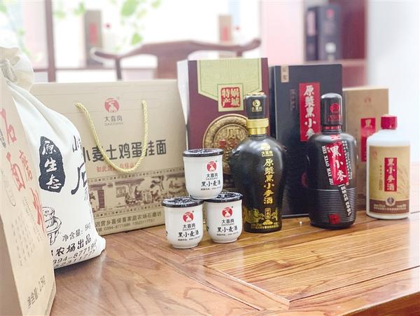 喜俊喜家庭農(nóng)場(chǎng)生產(chǎn)的黑小麥酒、大喜崗?fù)岭u蛋、大喜崗黑小麥面粉等系列明星產(chǎn)品。