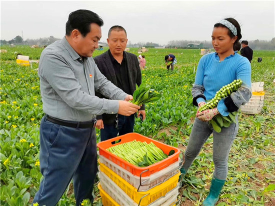 在張集鎮(zhèn)景鴻蔬菜種植基地,王國璽與正在干活的群眾親切交談,進菜地、看長勢、問產(chǎn)量,詳細了解產(chǎn)業(yè)規(guī)劃建設、政策落實、發(fā)展規(guī)模、運營模式、產(chǎn)品銷路、帶貧成效等具體做法和經(jīng)驗。王國璽指出,在疫情防控常態(tài)化下,鄉(xiāng)賢有效利用資本市場,與家鄉(xiāng)勞動力資源、土地資源有效銜接,發(fā)揮產(chǎn)品優(yōu)勢,增加群眾收入,鞏固了脫貧成果,為鄉(xiāng)村振興打下了堅實基礎,要做好宣傳推廣和經(jīng)驗總結。