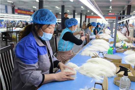 “從簡(jiǎn)單的梳羊毛到如今做高檔化妝刷,從產(chǎn)業(yè)鏈的末端做到頂端,從養(yǎng)家糊口到賺外匯,經(jīng)過多年的滾動(dòng)發(fā)展,鹿邑縣硬是把尾毛化妝刷這種‘小手藝’做成了助推縣域經(jīng)濟(jì)高質(zhì)量發(fā)展的‘大產(chǎn)業(yè)’。目前,全縣大大小小的化妝刷企業(yè)達(dá)1000多家,尾毛出口總量占全國(guó)化妝刷原毛出口的80%,年產(chǎn)羊毛3000多噸、尼龍毛9000多噸,生產(chǎn)各類化妝刷1.5億套,產(chǎn)品遠(yuǎn)銷20多個(gè)國(guó)家和地區(qū)。另外,作為尾毛的衍生產(chǎn)業(yè),羊毛衫加工產(chǎn)業(yè)近幾年的異軍突起,更是激活了全縣創(chuàng)業(yè)就業(yè)的一池春水。統(tǒng)計(jì)數(shù)字顯示,近幾年,鹿邑縣持續(xù)圍繞尾毛化妝刷特色產(chǎn)業(yè),強(qiáng)鏈延鏈補(bǔ)鏈,開展精準(zhǔn)招商,化妝刷及配套企業(yè)已發(fā)展到135家,實(shí)現(xiàn)產(chǎn)值50多億元,出口創(chuàng)匯21億;羊毛衫紡織企業(yè)發(fā)展到54家,有電腦織機(jī)6500臺(tái),年產(chǎn)各類針織服裝6000萬件,使鹿邑成為河南省最大的化妝刷生產(chǎn)基地、羊毛衫加工基地,帶動(dòng)全縣7.5萬人創(chuàng)業(yè)就業(yè)。