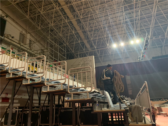11月24日晚,記者在周口市體育館見到,由馬艷麗領(lǐng)銜回饋家鄉(xiāng)的周商大會國際時裝秀舞臺正在搭建中,據(jù)正在施工的工人介紹,他們每天加班加點布置舞臺,預(yù)計26日舞臺調(diào)試完成,27日開始彩排,28日晚正式開啟時裝秀。