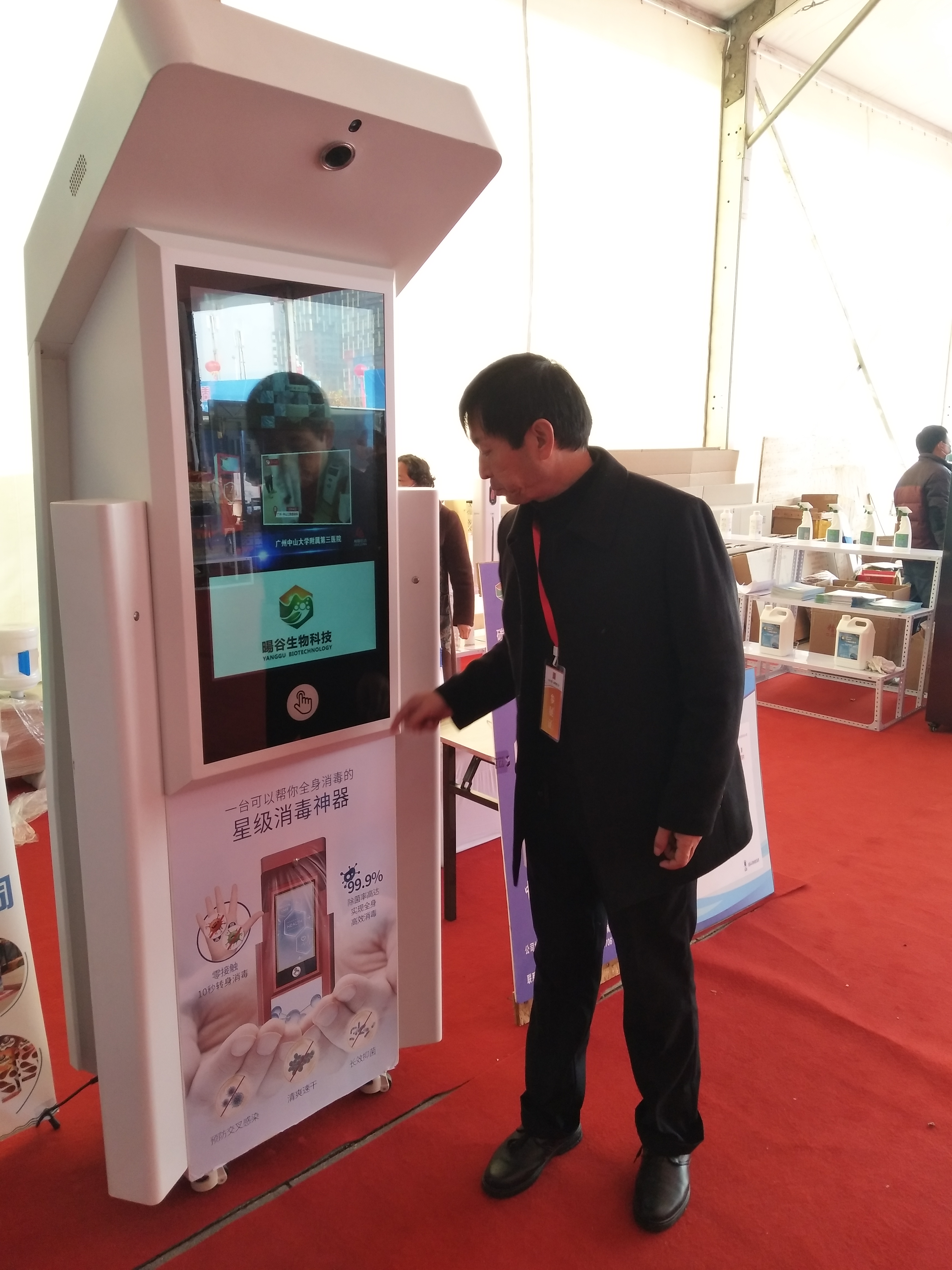 手掌往感控區(qū)上輕輕一罩,液晶屏四角就噴出霧化消毒液,大概持續(xù)10秒,足夠人轉(zhuǎn)一圈做周身消毒——在周商產(chǎn)品展示展覽大廳的西南角,北京陽谷生物科技有限公司市場部總監(jiān) 、項(xiàng)城人張清峰在介紹“人體感應(yīng)消毒機(jī)”,引得市民紛紛圍觀體驗(yàn)。由于消毒液沒有異味,部分市民質(zhì)疑是清水,對(duì)此張清峰說:“我們用的是‘竹芳牌’碳酸型微酸性次氯酸消毒液,我們的消毒機(jī)主要是面向校園推廣的,給孩子用的東西除了要有效,還得保證安全溫和,碳酸型的消毒液就沒有這么大的刺激性。”據(jù)張清峰介紹,“人體感應(yīng)消毒機(jī)”是今年五月下旬生產(chǎn)的新品,目前處在推廣階段,“當(dāng)?shù)弥芸谝k第一屆周商大會(huì)的消息,我第一時(shí)間想到要把消毒機(jī)展示給家鄉(xiāng)父老。我是個(gè)在北京打拼十多年的項(xiàng)城人,目前河南分公司由我負(fù)責(zé),項(xiàng)城市政府給了我很多支持?!?/p>
