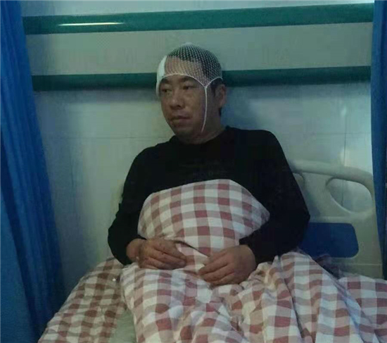 11月11日上午,在鎮(zhèn)領(lǐng)導(dǎo)的安排下,王少華前往縣醫(yī)保局為部分貧困人員及大病人員辦理慢性病本、領(lǐng)取健康扶貧相關(guān)材料。當(dāng)日,他領(lǐng)到材料已是上午10:30分,為了讓老百姓及時(shí)拿到慢性病本與扶貧材料,他馬不停蹄驅(qū)車趕回醫(yī)院。10:45分左右,他行駛到217省道與八一大道交叉口時(shí),一輛由南向北的半掛貨車直挺挺地撞到他的車身上。他頓時(shí)滿頭是血,當(dāng)場失去意識。120醫(yī)護(hù)人員趕到后,立即把他送到商水縣人民醫(yī)院急診室,完善頭顱、胸部、全腹CT等資料。之后,他接受清創(chuàng)縫合、輸液等相關(guān)處理。13:10分左右,王少華睜開眼睛,說的第一句話就是:“我要回醫(yī)院,慢性病本還在車?yán)铮乙o他們送去……”住院5天后,大腦嚴(yán)重受損的王少華還不記得車禍的經(jīng)過,一周后才能獨(dú)立行走。