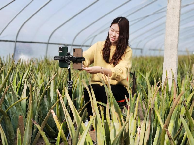 12月7日,川匯區(qū) 華耀城辦事處葛灣村孫立偉的蘆薈大棚里在進(jìn)行直播賣(mài)貨。周口市川匯區(qū) 華耀城辦事處葛灣村發(fā)展種植大棚蘆薈,成為當(dāng)?shù)氐奶厣?jīng)濟(jì)產(chǎn)業(yè),并成立集體經(jīng)濟(jì)組織合作社,全村統(tǒng)一規(guī)劃,結(jié)合市場(chǎng)需求規(guī)律,由合作社與企業(yè)簽訂訂單或通過(guò)電商平臺(tái)進(jìn)行網(wǎng)絡(luò)銷(xiāo)售。①15