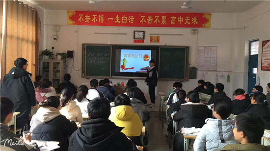 扶溝縣高中二(6)班學(xué)生楊毅說:“通過學(xué)校開展的學(xué)憲法活動,了解了很多和生活息息相關(guān)的法律知識,增強了法治觀念,我要做尊法、守法、護(hù)法的好少年?!?/p>
