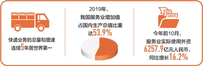 過去兩年,我國宣布了眾多金融業(yè)開放措施,以金融業(yè)為代表的服務業(yè)開放成為我國全面擴大對外開放的“重頭戲”。“十三五”以來,我國服務業(yè)對外開放新舉措密集出臺,服務業(yè)開放步履鏗鏘。統(tǒng)計顯示,今年前10月,服務業(yè)實際使用外資6257.9億元,同比增長16.2%。