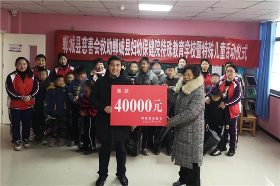 12月29日,鄲城縣慈善會(huì)會(huì)長趙愛梅、常務(wù)副會(huì)長趙如軒、副會(huì)長朱山峰、秘書長代文一行4人,到鄲城縣婦幼保健院特殊教育學(xué)校對特殊兒童進(jìn)行慈善捐助。