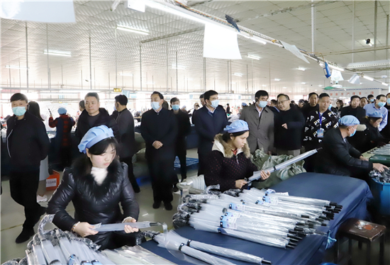 近年來,鄲城一直致力探索培育新的縣域經(jīng)濟增長點。鄲城縣委、縣政府組成黨政考察招商團,數(shù)次赴珠三角、長三角等經(jīng)濟區(qū)走訪和調研,推介鄲城、招才引智、招商引資、謀求共贏。千淘萬漉出真金,通過反復論證,充分發(fā)揮鄲城有10萬在外務工人員從事制傘行業(yè)這一優(yōu)勢,把握東南沿海傘業(yè)向內地轉移的良機,培育縣域經(jīng)濟傘業(yè)新動能的思路逐漸清晰起來。