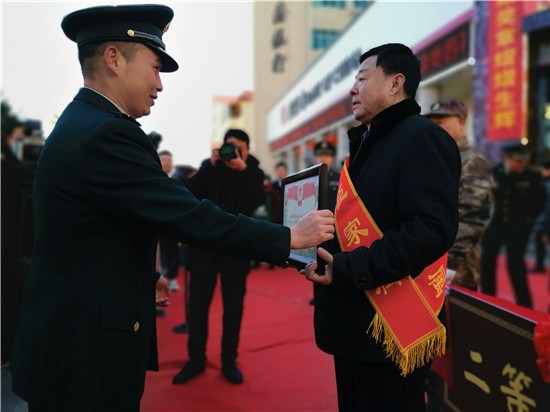 “這么冷的天沒想到軍地領(lǐng)導(dǎo)親自上門送喜報(bào),還定制了功臣之家的光榮牌匾……”看到送喜報(bào)“隊(duì)伍”的到來(lái),趙金豹激動(dòng)地連說到。