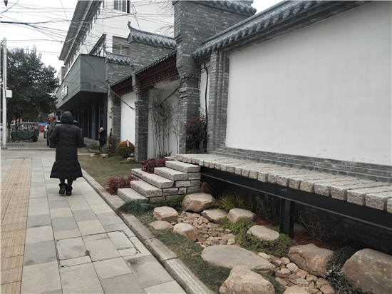 對(duì)面商鋪的張先生見(jiàn)證了這條小街的驚艷蝶變?!拔拿鞅甭肥抢辖郑斑@條街上的墻壁斑駁不已?!睆埾壬f(shuō),雖然街道極其干凈,但是覺(jué)得并不是很雅觀?,F(xiàn)在,綠植、竹林、亭臺(tái)取代了街道往日的蕭條沉寂,生態(tài)文化景觀一下子提振了小街的文化范,讓人覺(jué)得耳目一新。