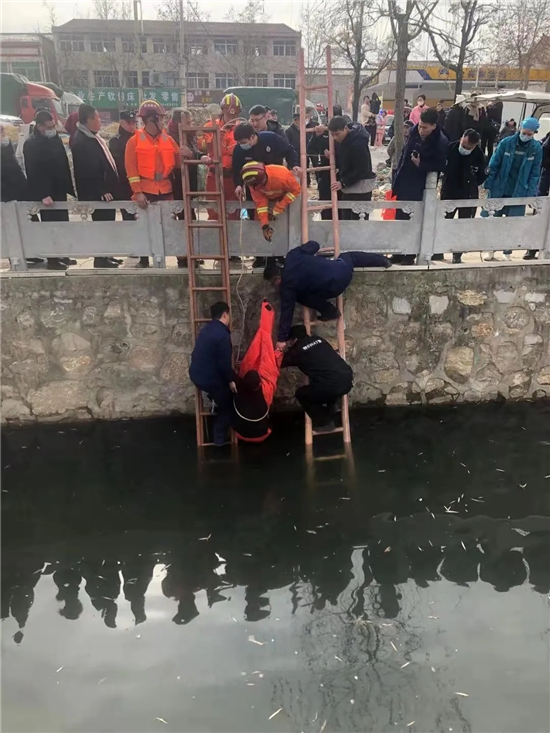 1月10日12時(shí)左右,鹿邑縣公安局特巡警大隊(duì)東關(guān)警亭值班人員,接到指揮中心指令稱:苑家園北側(cè)護(hù)城河里有一名女子落水。接到報(bào)警后,帶班隊(duì)長(zhǎng)武偉迅速帶領(lǐng)特警隊(duì)員姚留地、張景濤、倪亞彬等人趕到現(xiàn)場(chǎng)。