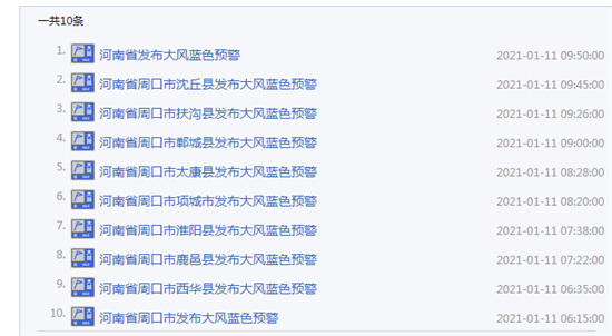 1月11日6時15分發(fā)布大風藍色預警信號: