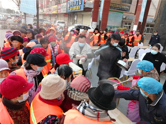 活動(dòng)當(dāng)天,在鑫豐苑·瑞隆府售樓部門口彌漫著臘八粥的香味。為了能讓大家喝到新鮮的臘八粥,這家愛心企業(yè)人員凌晨4點(diǎn)就開始忙碌了,在做好疫情防控的前提下,他們仔細(xì)挑選材料、淘洗、入鍋,經(jīng)過兩個(gè)多小時(shí)的精心熬制,終于讓大家吃上了甜甜糯糯的臘八粥。暖暖的臘八粥,讓大家共同感受節(jié)日的氣氛。"打掃衛(wèi)生來(lái)得早,沒時(shí)間為家人熬粥,喝了這一碗熱乎乎的臘八粥,感覺渾身暖乎乎的",環(huán)衛(wèi)工人李女士說。