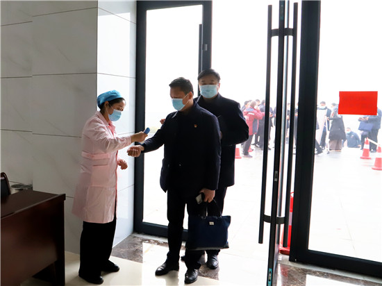 在會場之外,該縣疫情防控指揮部設立多重保障守護大會安全。在疫情防控常態(tài)化所有人員必須戴口罩的情況下,首先通過第一重保障,即通過手機掃描“通信大數據行程卡”,呈“綠碼”方可走向會場大門;進入會場大門時,排隊進行體溫監(jiān)測,體溫顯示正常方可進入。與此同時,會場座位按照隔位入座的形式,保障人與人之間的距離超過50厘米。在多重保障的守護下,確保大會順利安全舉行。③5