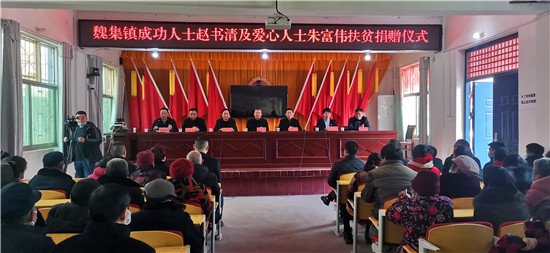 1月29日,天氣乍暖還寒,魏集鎮(zhèn)政府人頭攢動(dòng),喜氣洋洋,一片熱鬧的景象。內(nèi)蒙古希拉穆仁旅游置業(yè)開(kāi)發(fā)有限公司董事長(zhǎng)、內(nèi)蒙古楊子照明鋼桿制造有限責(zé)任公司董事長(zhǎng)、內(nèi)蒙古周口商會(huì)會(huì)長(zhǎng)趙書清和愛(ài)心人士朱富偉一行,帶著整整兩卡車米、面、油共計(jì)八萬(wàn)元生活物資,回到家鄉(xiāng)魏集鎮(zhèn)開(kāi)展扶貧濟(jì)困活動(dòng),在嚴(yán)寒的冬日給魏集鎮(zhèn)困難群眾帶來(lái)了溫暖和祝福??h政協(xié)主席孫培忠,縣委常委、宣傳部長(zhǎng)李本磊出席活動(dòng)。魏集鎮(zhèn)黨委書記衛(wèi)春忙,鎮(zhèn)長(zhǎng)劉艷光參加活動(dòng)。