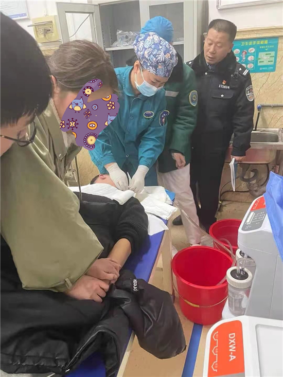 當(dāng)日21時(shí)許,在該賓館一房間,丁高嶺通過半掩的門,發(fā)現(xiàn)了輕生男子,急忙沖過去,取下了吊在其脖子上的電話線,立即通知120醫(yī)生進(jìn)行救治,并與醫(yī)生一起將其拉至項(xiàng)城市第一人民醫(yī)院進(jìn)一步治療。張某某極不配合、拒絕救治,丁高嶺苦口婆心勸說(shuō),并電話聯(lián)系到其父母,共同做其思想工作。經(jīng)過規(guī)勸,急救醫(yī)生才得以對(duì)其進(jìn)行洗胃等對(duì)癥處置,經(jīng)過近40分鐘的搶救,張某某終于脫離了生命危險(xiǎn)。