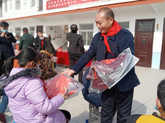 春節(jié)臨近,方凱自掏腰包6萬(wàn)余元,購(gòu)買(mǎi)164套新校服捐贈(zèng)給西華縣艾崗鄉(xiāng)半截樓小學(xué),一如既往地將大愛(ài)播撒與傳遞。說(shuō)起方凱的愛(ài)心行動(dòng),那是不勝枚舉。方凱10余年來(lái)堅(jiān)持幫貧濟(jì)困,每年都采取不同的方式,為貧困戶、貧困大學(xué)生、環(huán)衛(wèi)工、留守兒童、敬老院、貧困學(xué)校、福利中心智障孩子和災(zāi)區(qū)等進(jìn)行愛(ài)心捐助,已經(jīng)累計(jì)捐款捐物達(dá)1600多萬(wàn)元。為了表達(dá)對(duì)方凱的謝意,西華縣艾崗鄉(xiāng)半截樓小學(xué)向方凱贈(zèng)送了“大愛(ài)無(wú)疆育英才,心系未來(lái)報(bào)黨恩”的錦旗,同時(shí),還鄭重聘請(qǐng)方凱為該校名譽(yù)校長(zhǎng)。