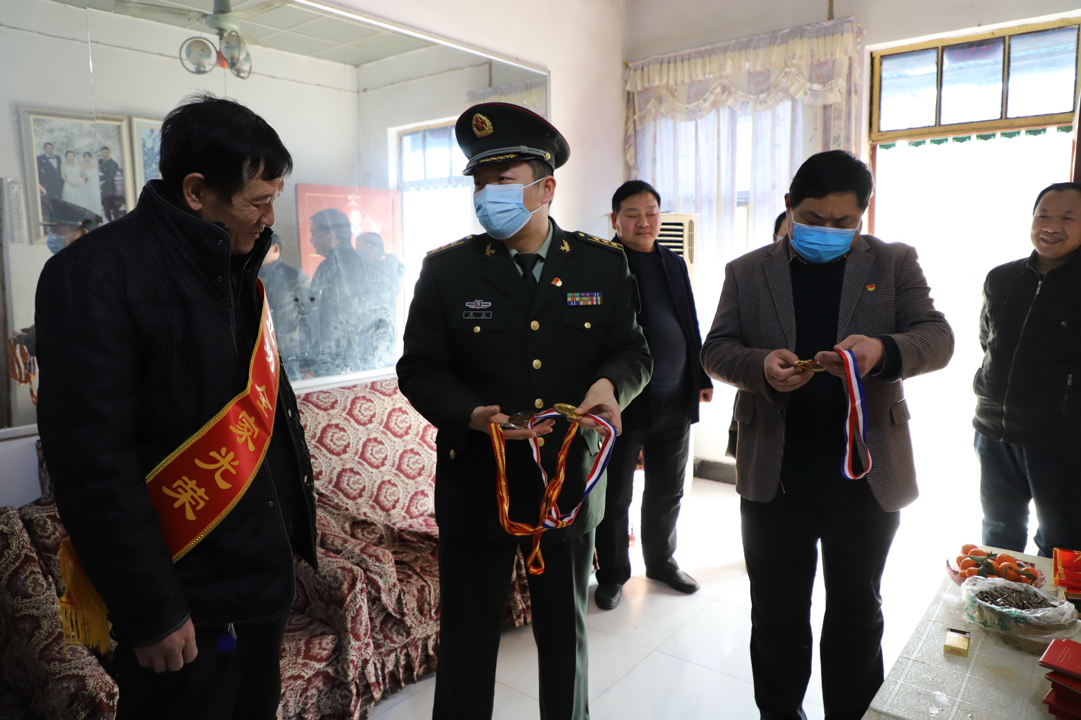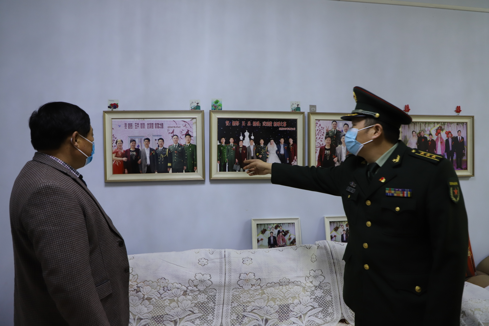 一門三杰王光輝?!澳愫蜕┳痈冻隽撕芏?,為部隊培養(yǎng)出了三個優(yōu)秀人才,了不起,感謝你們”,張政委看著墻上的全家福與王光輝的父親交談。據(jù)悉,王光輝兄弟三個,都在部隊服過役,大哥現(xiàn)任大連某部軍官,二哥服役5年退伍,王光輝現(xiàn)在北京武警總隊任職,中尉,2020年榮立個人三等功。