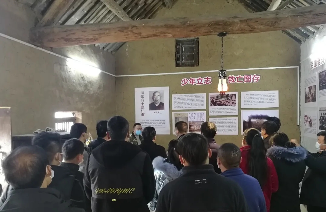 陳鵬指出,中國夢是習(xí)近平總書記提出的新思想、新方略, 中國夢的具體目標(biāo)是達(dá)到國家富強(qiáng)、民族復(fù)興、人民幸福, 其實(shí)質(zhì)是實(shí)現(xiàn)中華民族的偉大復(fù)興。所以, 鄉(xiāng)村振興戰(zhàn)略事關(guān)“三農(nóng)”的發(fā)展, 特別是廣大農(nóng)民的中國夢的實(shí)現(xiàn), 是實(shí)現(xiàn)整個中華民族中國夢的重要舉措。在改革開放40年的偉大進(jìn)程中, 黨和國家根據(jù)各個階段出現(xiàn)的不同問題, 提出了不同的戰(zhàn)略思想。當(dāng)今時代,鄉(xiāng)村振興戰(zhàn)略提出了新的總要求, 即產(chǎn)業(yè)興旺、生態(tài)宜居、鄉(xiāng)風(fēng)文明、治理有效、生活富裕,為新時代發(fā)展和解決“農(nóng)業(yè)、農(nóng)村、農(nóng)民”問題提供了有效途徑。陳鵬強(qiáng)調(diào),在今后的鄉(xiāng)村振興工作中,大家要牢固樹立“四個意識”,堅定“四個自信”,不忘初心、立足崗位、扎實(shí)工作,增強(qiáng)責(zé)任擔(dān)當(dāng),保持先鋒本色,以嶄新的精神風(fēng)貌、飽滿的工作熱情、堅強(qiáng)的意志品質(zhì),傳承紅色基因,講好奉母故事,深化“六個”活動,大力發(fā)展集體經(jīng)濟(jì),提升村民獲得感、幸福感指數(shù)。一是開展“支部聯(lián)手、共奔小康”結(jié)對幫扶活動,讓黨員先“動起來”。二是開展“咱村怎么干,大家說了算”村情民意大調(diào)查活動,把干群心“聚起來。三是創(chuàng)辦“鄉(xiāng)村大食堂”,把老年人“養(yǎng)起來”。解決鰥寡孤獨(dú)老人吃飯問題,探索“以土地養(yǎng)老、以房屋養(yǎng)老、以股份養(yǎng)老”新的養(yǎng)老服務(wù)模式,最終實(shí)現(xiàn)全民養(yǎng)老,構(gòu)建“老有所養(yǎng)、老有所為、老有所依、老有所樂”的服務(wù)體系。四是組建鄉(xiāng)村振興“婦女文藝宣傳隊”,把半邊天“組織起來”。五是改建“農(nóng)家書屋”,把青少年“管起來”。利用閑散房屋改建農(nóng)家書屋,退休教師義務(wù)參加輔導(dǎo),有效解決留守兒童放學(xué)后無人輔導(dǎo)的現(xiàn)實(shí)問題和外出務(wù)工父母的后顧之憂,讓他們在愉快的環(huán)境下學(xué)習(xí)知識、開闊視野,為今后的鄉(xiāng)村振興儲備人才。六是整合資源,把產(chǎn)業(yè)“做起來”。黨支部要領(lǐng)辦供銷合作社,以“三變改革”為抓手,采取“四荒地、四邊地”綜合整治,盤活沉睡資源,迸發(fā)集體經(jīng)濟(jì)活力,穩(wěn)步推進(jìn)農(nóng)村產(chǎn)權(quán)制度改革,把村民分散的土地、人力、資金、房屋等資源進(jìn)行整合,成立土地股份合作社、勞務(wù)股份合作社、置業(yè)股份合作社、旅游餐飲服務(wù)股份合作社、電子商務(wù)股份合作社等“五大合作社”,對入股村民進(jìn)行入股分紅和集體紅利二次分配,讓群眾感黨恩、聽黨話、跟黨走,享受集體經(jīng)濟(jì)發(fā)展帶來的更大紅利。屆時我們會在做好村級五大合作社的基礎(chǔ)上,探索建立鎮(zhèn)域級合作社,整合全鎮(zhèn)各村資源,聯(lián)手打造農(nóng)村集體經(jīng)濟(jì)航空母艦,由過去各村單打獨(dú)斗變?yōu)榇迓?lián)手闖市場,提高市場競爭力和抗風(fēng)險能力,以此推動奉母農(nóng)村集體經(jīng)濟(jì)健康快速發(fā)展。黨課結(jié)束后,在講解員的帶領(lǐng)下,大家依次參觀了周口市第一個黨支部舊址,認(rèn)真參觀每一件實(shí)物,用心聆聽每一個故事,與會人員不禁為奉母籍革命老前輩張仁甫帶領(lǐng)大家推翻封建社會三座大山不屈不撓的英雄壯舉斗爭紛紛點(diǎn)贊!