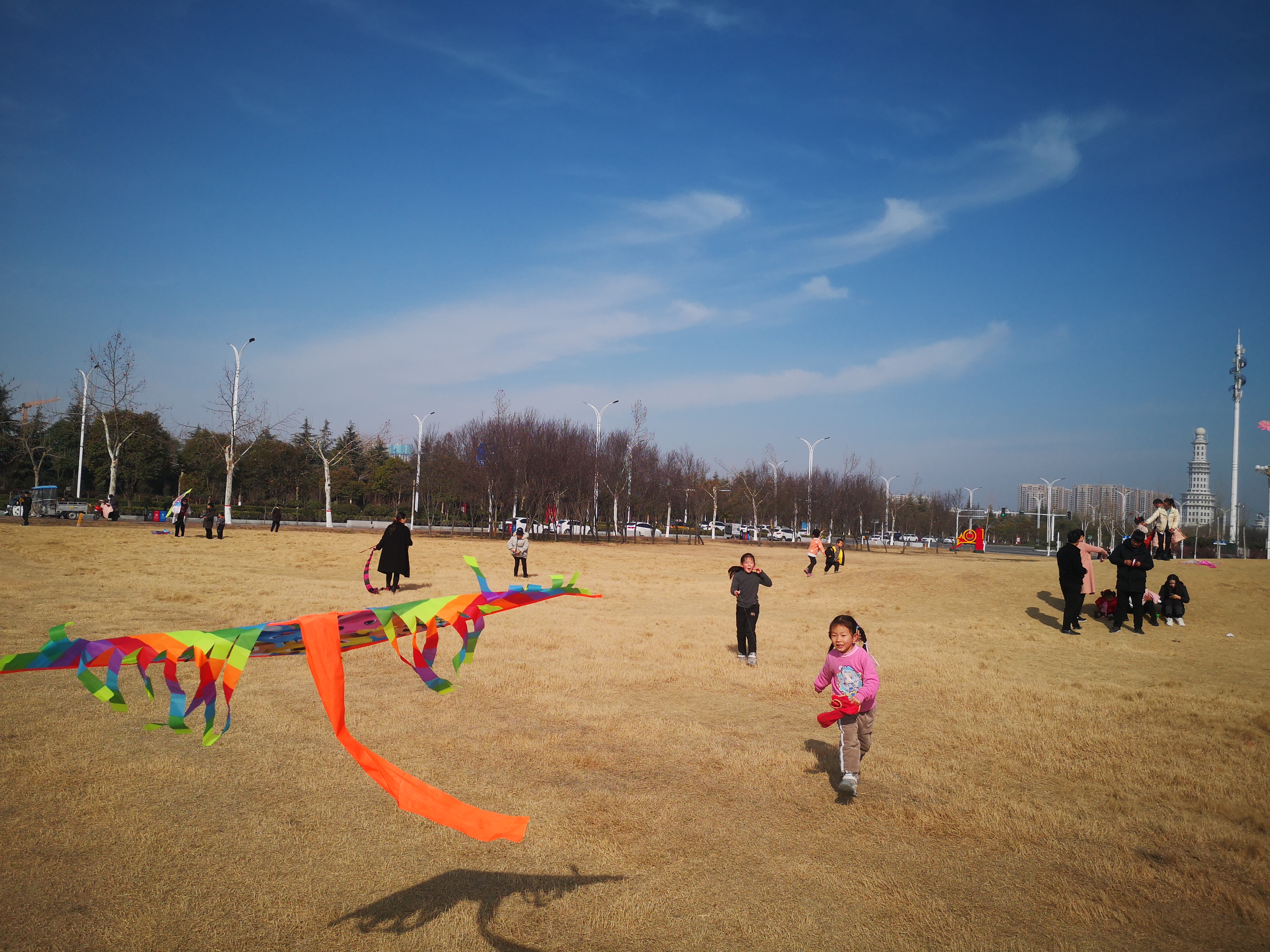 2月16日,周口大道旁邊的大草坪上,小朋友在放飛風(fēng)箏。當日,藍天白云,春光正好,民眾樂享春節(jié)假日。