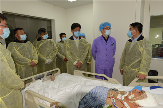 經(jīng)過一段時間的治療,張寧博的身體各項指標(biāo)都明顯好轉(zhuǎn),但尚未脫離危險,仍在醫(yī)院重癥監(jiān)護室救治。2月18日~19日,省公安廳黨委委員、副廳長、政治部主任高萬象,扶溝縣委書記孫紅偉等先后到鄭州大學(xué)第一附屬醫(yī)院ICU重癥監(jiān)護室,代表省公安廳黨委和扶溝縣委、縣政府看望慰問張寧博及其家屬。慰問中,他們要求醫(yī)護人員將生命放在第一位,不惜一切代價,全力救治,精心治療。