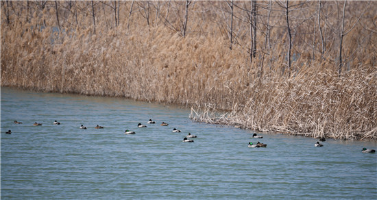 碧水葦蕩間水鳥成群