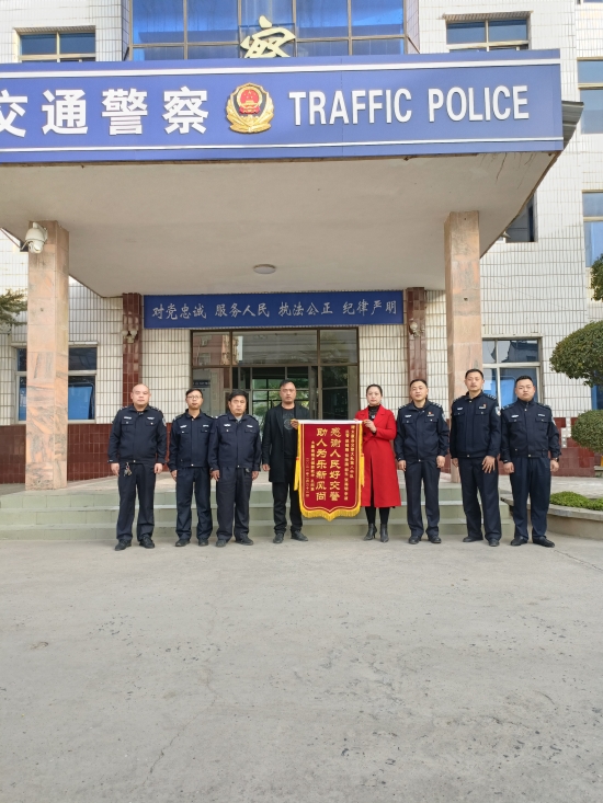 2月22日上午,太康縣公安局交警大隊(duì)院內(nèi),兩位學(xué)生家長(zhǎng)將一面寫(xiě)有“人民好交警 助人為樂(lè)新風(fēng)尚”的錦旗送到太康縣公安局交警大隊(duì)大隊(duì)長(zhǎng)梁輝和幾名交警手中,感謝他們幫助找到走失的孩子。②8 周口日?qǐng)?bào)·周道客戶(hù)端記者 張洪濤攝