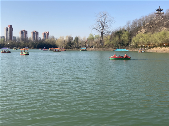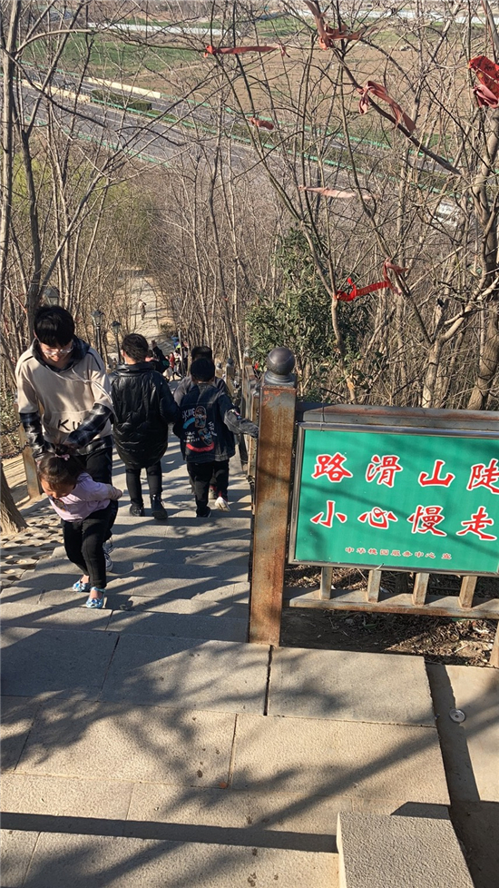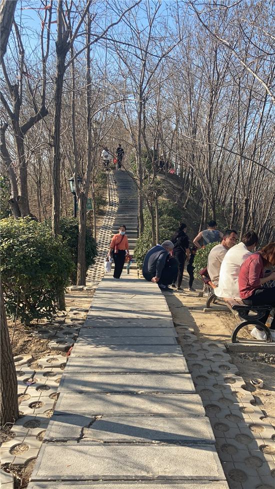 在槐香湖邊,年輕人三五結(jié)伴登上游艇,“坐船能到湖那邊的小島,島上也有槐樹(shù),拍照肯定特別漂亮?!狈掂l(xiāng)大學(xué)生把七星島上的景色留在了自己的相機(jī)里。七星島與槐香湖相連的橋上,人潮擁擠,有的人席地而坐,觀(guān)賞著橋上的風(fēng)景。當(dāng)問(wèn)道在外市工作的王先生游玩感受時(shí),他回答到:“年后上班沒(méi)時(shí)間鍛煉身體,今天我把全家人帶來(lái)登山,呼吸一下新鮮空氣?!雹?