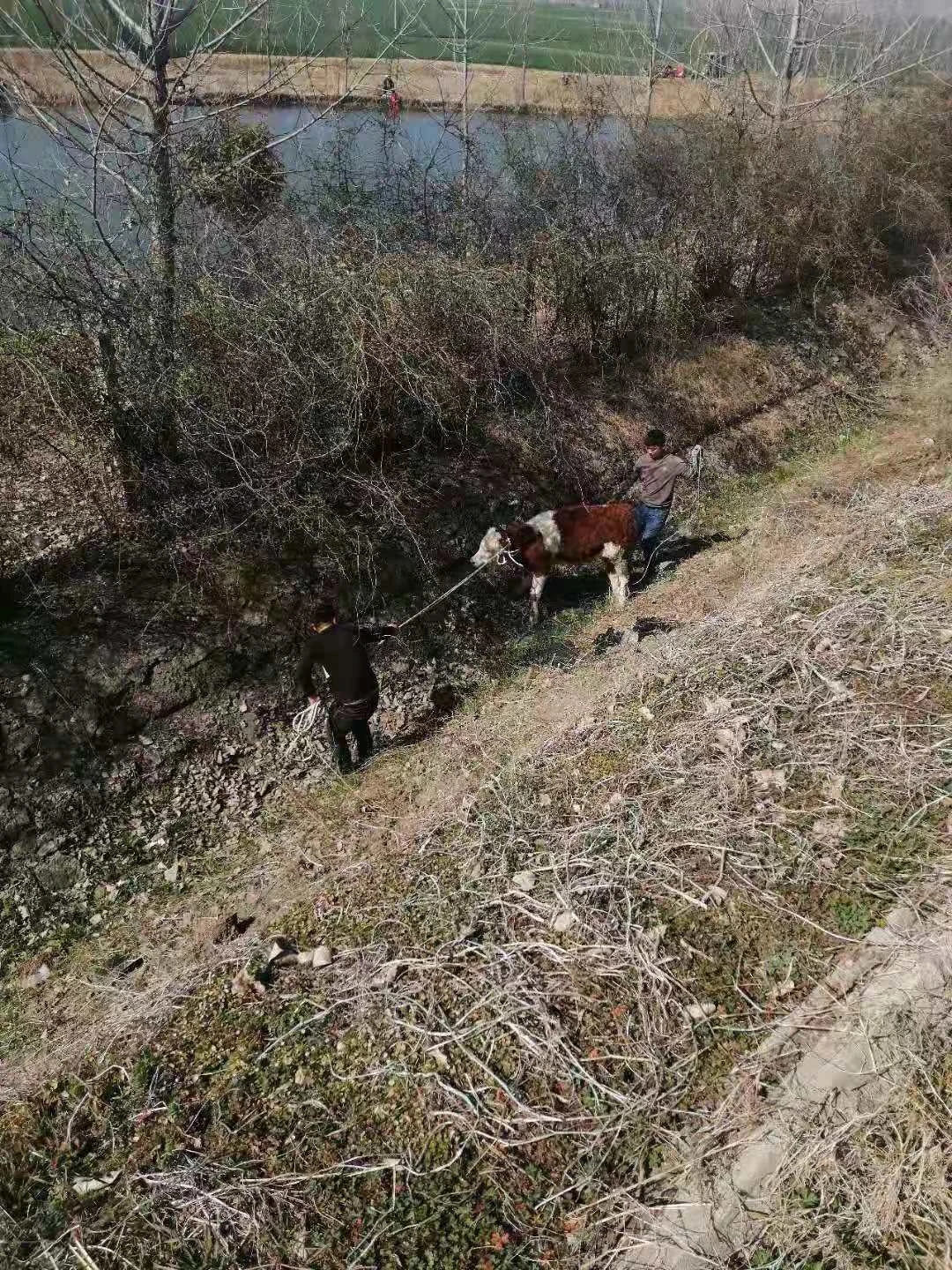 接警后,距離事發(fā)地點最近的周口高速二大隊項城中隊值班民警迅速趕往現(xiàn)場。民警到達現(xiàn)場后了解到,一輛專業(yè)運輸肉牛貨車從北方到南方運輸肉牛,有兩頭牛在行駛途中突然受驚撞破了車上鋼管圍欄跳到了高速公路上,其中一頭又越過中央隔離護欄跑到了對向車道。一輛行駛中轎車躲避不及與牛發(fā)生碰撞,導致車輛嚴重損壞,牛被撞死。另一頭沿著高速公路護欄來回折騰著跑,過路車輛紛紛躲避,形勢也十分危險。民警立即指揮來車暫停,招呼司機等人把牛趕下高速公路邊溝,減少危險,然后分段站在護欄處把守,讓有捉牛經驗的車主和司機在邊溝內捉牛。