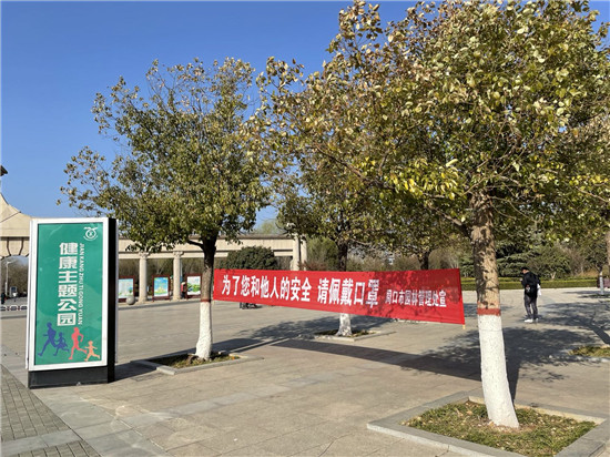 春色正宜結(jié)伴行。2月19日,記者來(lái)到周口公園,在公園門(mén)口,就看到了“進(jìn)入公園請(qǐng)佩戴口罩”的宣傳標(biāo)語(yǔ)。進(jìn)入公園,藍(lán)天碧水映入眼簾,微風(fēng)輕拂,花香陣陣,放眼望去,遠(yuǎn)處還有孩童在放風(fēng)箏,一派閑適景象……