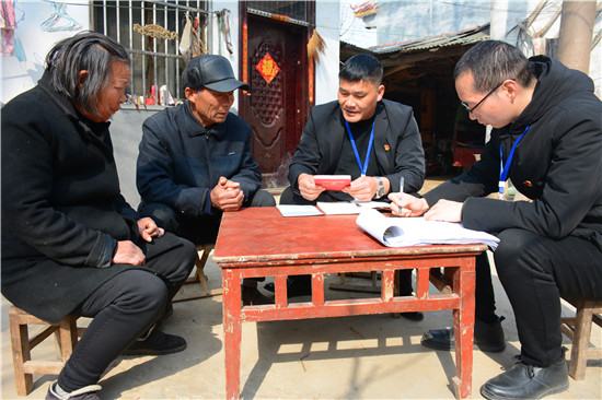 “春節(jié)前夕,有人給您送慰問品嗎?”“有啊,村干部送過了一桶食用油?!薄澳鷤兎蚱迋z個養(yǎng)老金沒問題吧?”“正常領(lǐng)取,沒有問題?!薄坝心膫€部門向您收過錢嗎?”“這不屬于非法占地,沒有人來要錢。”“年前您參加了村委換屆選舉嗎?對干部滿意不?”“參加了,俺對新任干部沒有意見”......不知不覺臨近中午,邵國闖等微笑告辭。