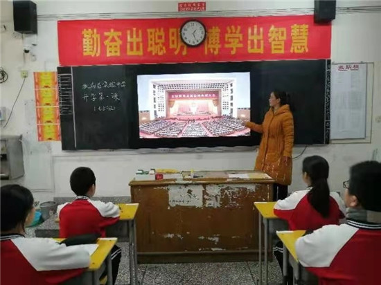 “在浙江省嘉興市有一處美麗的風(fēng)景——南湖,不僅以秀麗的煙雨風(fēng)光享有盛名,而且還因中國共產(chǎn)黨第一次全國代表大會(huì)在這里勝利閉幕而備受世人矚目……”3月1日上午8時(shí)30分,記者在扶溝縣回族小學(xué)看到,學(xué)校全體師生正在同一時(shí)間觀看“開學(xué)第一課”。