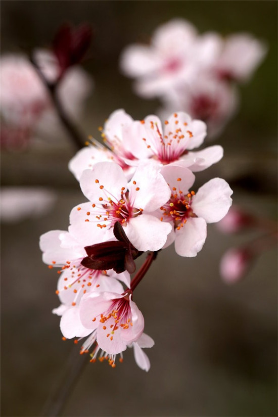 滿(mǎn)樹(shù)芳菲紅葉李,疏枝密蕾遍流霞。
