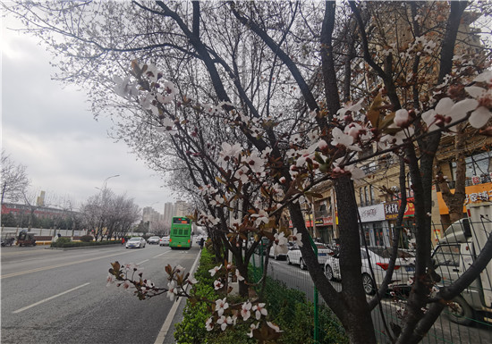 3月1日,慶豐街道兩邊的紫葉李花開似雪,紫葉李貫穿整個(gè)慶豐街,形成了一道靚麗的風(fēng)景。盛開的紫葉李花瓣兒呈白色或粉色,微風(fēng)拂過,花瓣兒飄散在空中,為過往的車輛下起了晴天里的花瓣雨。