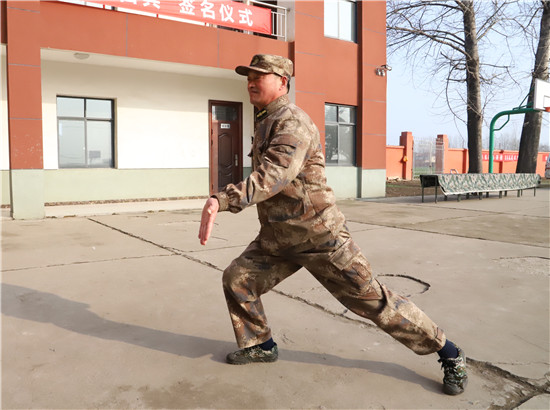 “立正!向右看齊!”3月4日,在鄲城縣民兵訓(xùn)練基地,2021年春季征兵預(yù)定新兵訓(xùn)練場上,53歲的訓(xùn)練班長王成華從骨子里喊出這句口號、集結(jié)準(zhǔn)新兵隊伍。從1992年“鐵軍”127師退伍進(jìn)入人武部至今,這句口號他已經(jīng)喊了29年,始終底氣十足。同事和準(zhǔn)新兵們尊稱他為“班長王”。