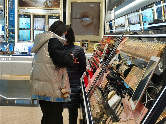 “精致的生活需要儀式感,把自己打扮得漂漂亮亮的,是對自己的關愛?!痹谝簧虉龅幕瘖y品專柜前,一對正在選購化妝品的母女說。