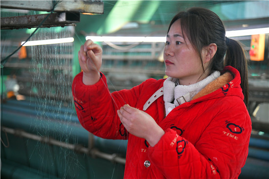 “不用外出打工,一天掙錢100多塊,這小漁網(wǎng)幫俺編織起小康夢!”3月4日上午,在商水縣練集鎮(zhèn)中楊莊村,正在村頭匯樂生態(tài)漁網(wǎng)公司生產(chǎn)車間察看機器生產(chǎn)網(wǎng)布的村民王英笑哈哈地說。