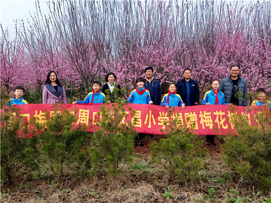 作為川匯區(qū)政協(xié)委員,李萌熱衷于公益事業(yè),尤其對(duì)周口的教育事業(yè)情有獨(dú)鐘。植樹(shù)節(jié)前的一天,李萌結(jié)識(shí)了文昌小學(xué)校長(zhǎng)朱剛偉。交流中,李萌了解到文昌小學(xué)校園中三季有花,唯獨(dú)春初缺景,朱剛偉又注重學(xué)生的品德教育,于是決定以周口梅園的名義向周口市文昌小學(xué)捐贈(zèng)品種梅樹(shù)100株,也以此寓意習(xí)近平總書(shū)記鼓勵(lì)后輩經(jīng)常引用的“梅花香自苦寒來(lái)”的格言送給學(xué)校的小朋友們。