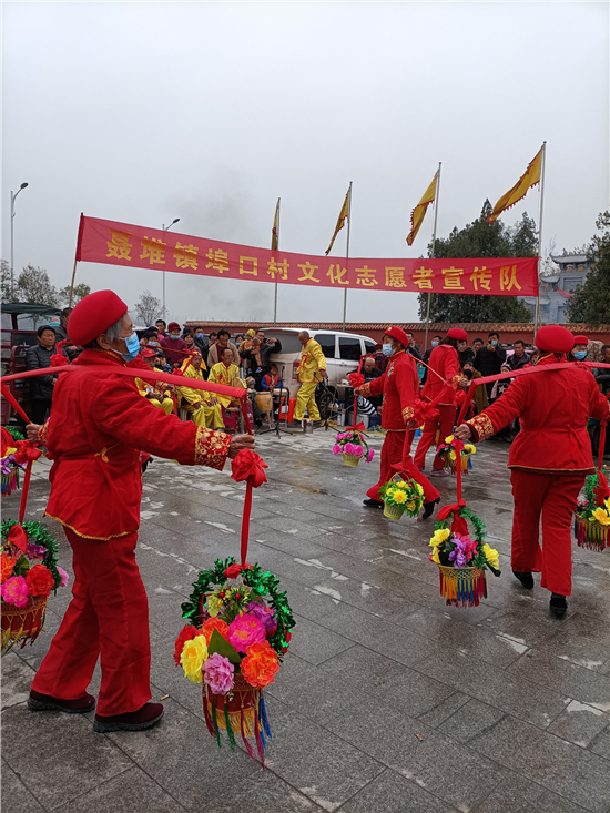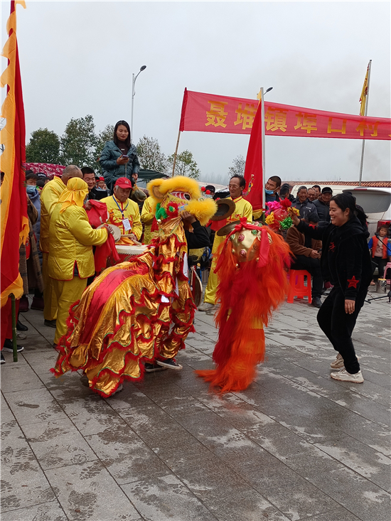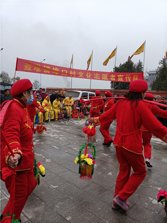 二月二,龍?zhí)ь^。3月14日,西華縣女媧城門前的廣場(chǎng)上,寫著“聶堆鎮(zhèn)埠口村文化志愿者宣傳隊(duì)”的紅色條幅前吸引了眾多游人。這些志愿者們用群眾喜聞樂(lè)見的舞獅、戲曲等傳統(tǒng)文藝節(jié)目,自編自演脫貧攻堅(jiān)給村民們帶來(lái)的新變化,宣傳黨的富民政策,鼓勵(lì)大家參與到鄉(xiāng)村振興工作中。