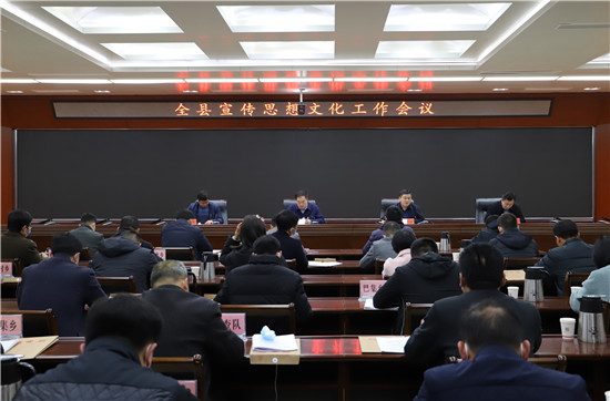 吳青鋒指出,2021年全縣宣傳思想文化工作的總體要求是,堅(jiān)持以習(xí)近平新時(shí)代中國(guó)特色社會(huì)主義思想為指導(dǎo),全面貫徹十九大和十九屆二中、三中、四中、五中全會(huì)精神,深入貫徹習(xí)近平總書記關(guān)于宣傳思想工作的重要論述和視察河南重要講話精神,貫徹落實(shí)全國(guó)、全省、全市宣傳部長(zhǎng)會(huì)議和縣委十二屆九次全會(huì)暨縣委經(jīng)濟(jì)工作會(huì)議精神,増強(qiáng)“四個(gè)意識(shí)”,堅(jiān)定“四個(gè)自信”,做到“兩個(gè)維護(hù)”,聚焦“舉旗幟、聚民心、育新人、興文化、展形象”的使命任務(wù),圍繞開局“十四五”、開啟新征程,圍繞立足新發(fā)展階段、貫徹新發(fā)展理念、構(gòu)建新發(fā)展格局,緊扣慶祝建黨百年宣傳教育這條主線,以深化實(shí)施“八大工程”為總抓手,在推動(dòng)習(xí)近平新時(shí)代中國(guó)特色社會(huì)主義思想深入人心上下功夫,在唱響愛黨愛國(guó)愛社會(huì)主義的時(shí)代主旋律上下功夫,在弘揚(yáng)時(shí)代新風(fēng)、培育時(shí)代新人上下功夫,在凝心聚力推動(dòng)全縣經(jīng)濟(jì)高質(zhì)量發(fā)展上下功夫。強(qiáng)化使命擔(dān)當(dāng)、銳意改革進(jìn)取,在新的歷史起點(diǎn)上譜寫守正創(chuàng)新、攻堅(jiān)克難的出彩篇章。