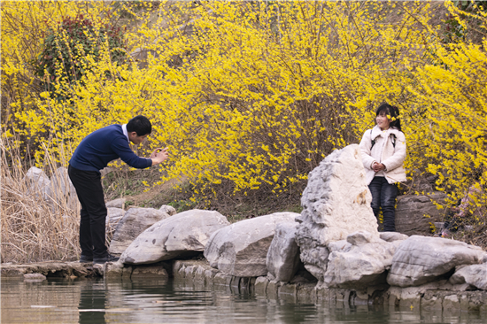 乍寒乍暖的二月天,讓迎春的花兒趕趟兒似的陸續(xù)綻開(kāi),桃紅柳綠春意濃,市民們走出家門(mén),帶著孩子踏青賞花。文昌大道上的周口公園內(nèi)垂柳綠意濃,桃花、櫻花、玉蘭花次第綻放,成為市民們春天里賞花的好去處。