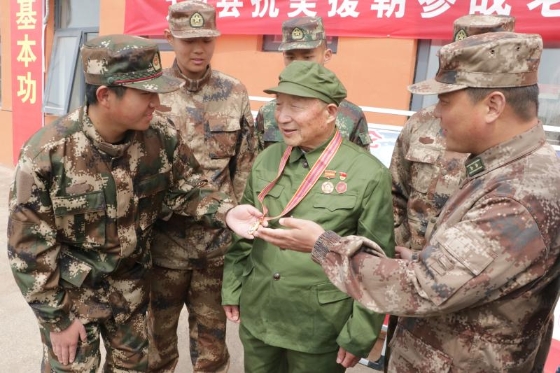 張詩義老人講述結(jié)束后,準新兵們紛紛圍著英雄,用手觸摸掛在老兵胸前的軍功章,一種志在軍營的信念播撒在這群熱血青年的心里,更加堅定了他們?nèi)胛閰④姷男判暮蜎Q心。