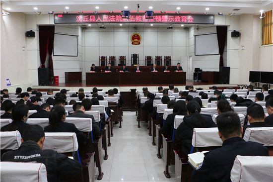 為扎實開展隊伍教育整頓,深入推進學習教育環(huán)節(jié)中的警示教育環(huán)節(jié),促使全院干警知敬畏、存戒懼、守底線。3月22日,沈丘縣人民法院召開警示教育大會。縣紀委監(jiān)委派駐紀檢監(jiān)察組組長、黨組副書記王宇根據(jù)身邊的案例為大家做了一場警示教育報告。