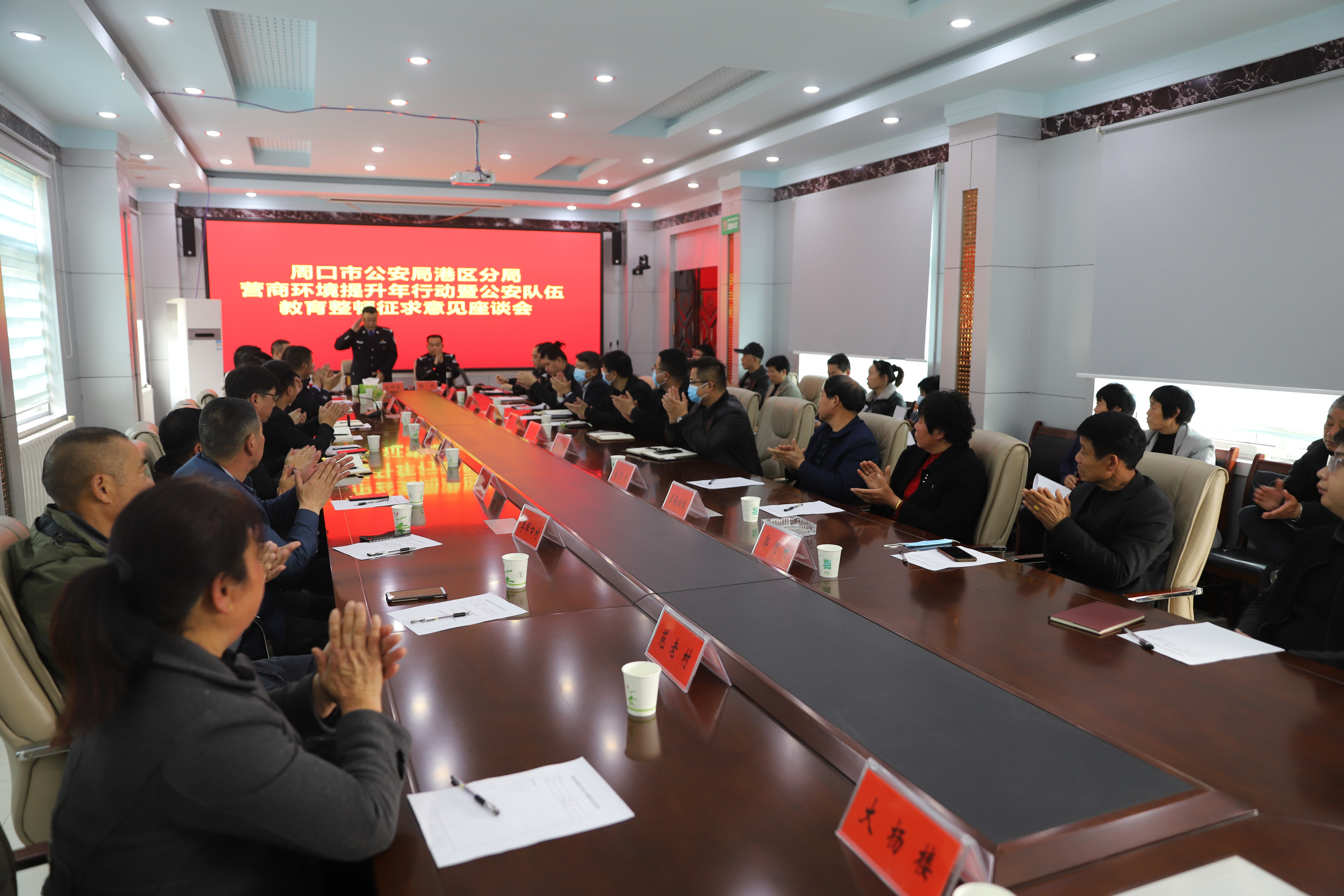 康群泉詳細(xì)介紹了分局為臨港經(jīng)濟(jì)發(fā)展提供保障和服務(wù)的12項(xiàng)新舉措,并誠(chéng)懇邀請(qǐng)各企業(yè)代表結(jié)合自身工作與行業(yè)實(shí)際,對(duì)港區(qū)公安工作多提寶貴意見和建議,助力公安機(jī)關(guān)更好地發(fā)揮職能作用,為企業(yè)發(fā)展?fàn)I造穩(wěn)定的社會(huì)環(huán)境、安全的治安環(huán)境、優(yōu)質(zhì)的服務(wù)環(huán)境。與會(huì)人員結(jié)合企業(yè)經(jīng)營(yíng)性質(zhì)和行業(yè)特點(diǎn),暢談了當(dāng)前治安環(huán)境、營(yíng)商環(huán)境的巨大變化,充分肯定了港區(qū)公安維護(hù)安全穩(wěn)定作出的貢獻(xiàn),貼近實(shí)際地講了一些關(guān)于基礎(chǔ)設(shè)施、交通管理、周邊環(huán)境方面的問題、不足,并提出了對(duì)公安機(jī)關(guān)進(jìn)一步服務(wù)民營(yíng)企業(yè)發(fā)展的期望。